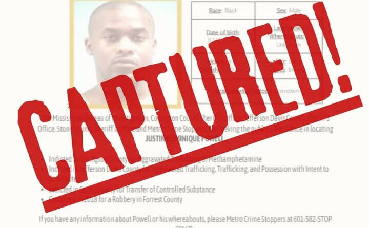 Justin Powell, who was listed on the Mississippi Most Wanted list, has been arrested by the U.S. Marshals Service.