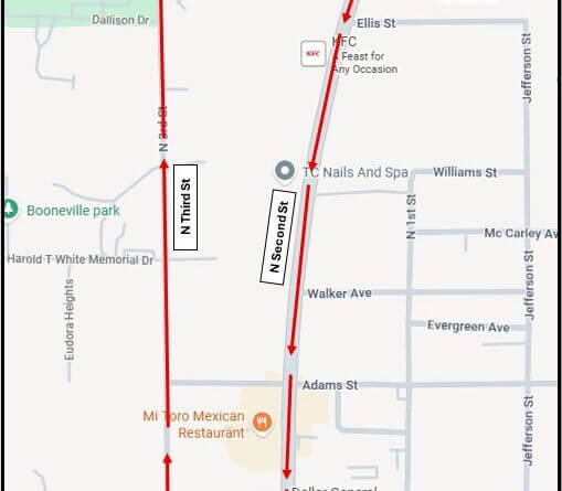 From there, the parade continues west on Church Street to Third Street, then turns right and travels north to Coach Billy Ward Drive. It will turn right again, heading east back toward Cunningham Boulevard.