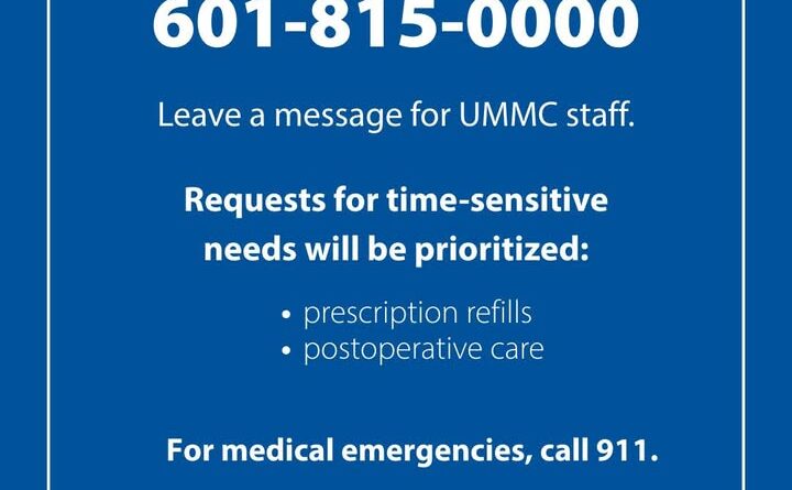 The medical center has set up a triage line for patients at 601-815-0000. For medical emergencies, UMMC said, call 911. The center said requests for time-sensitive needs, such as medication refills or postoperative care visits, will be prioritized.