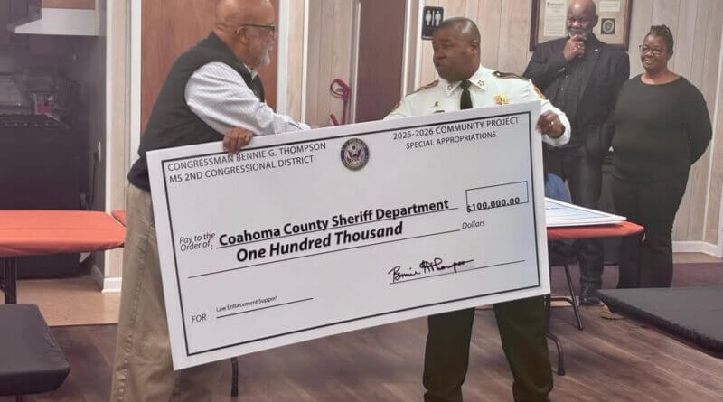 The office said the award was made possible by Rep. Bennie Thompson and will be used to support essential law enforcement operations and enhance public safety initiatives throughout Coahoma County.
