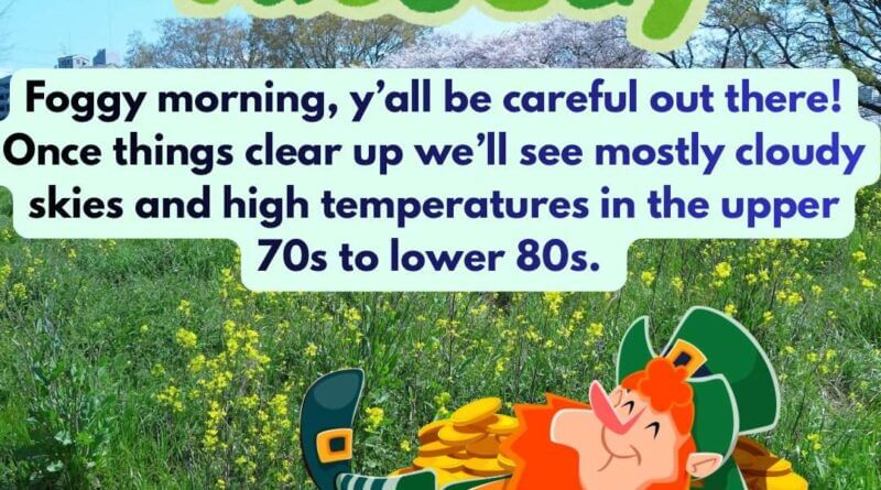 After the morning fog clears, forecasters expect high temperatures to reach the upper 70s and lower 80s, with partly cloudy skies and generally dry conditions for the day, Darkhorse Press said.
