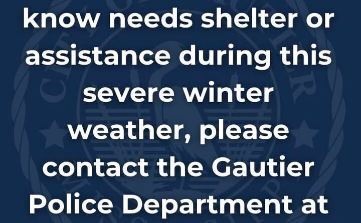 The Gautier Police Department urged residents to call 228-497-2486 if they or someone they know needs shelter or assistance during severe winter weather, the department said in a Facebook post.