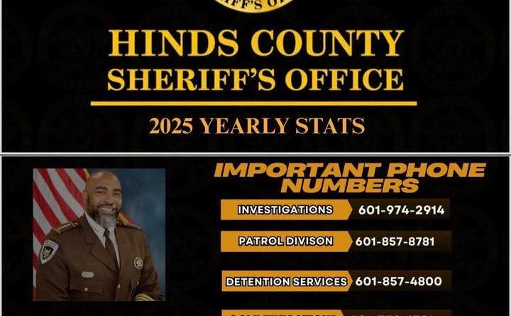 Hinds County Sheriff’s Office posted photos on its official Facebook page captioned “Year 2025 Review-HCSO Yearly Stats,” providing a summary of its activity for the year, the department said in the post.