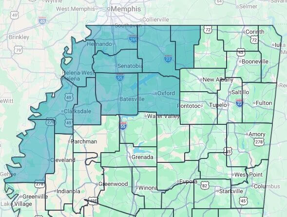 MDOT identified the counties as Benton, Bolivar, Coahoma, DeSoto, Lafayette, Marshall, Panola, Quitman, Tate and Tunica. The agency noted the report covers state-maintained roadways, including interstates and state highways, and does not reflect conditions on local roads.