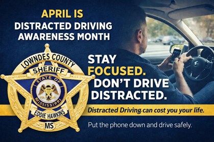Lowndes County Sheriff’s Office in Mississippi is urging drivers to avoid distractions during April, which it identified as Distracted Driving Awareness Month.