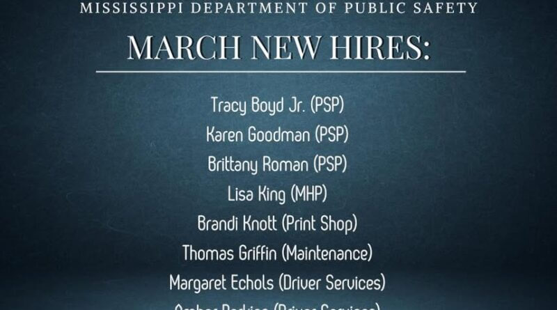 The Mississippi Department of Public Safety posted on its Facebook page recently to welcome new team members to the agency.