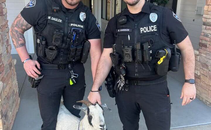 The post said Officer Lucas spotted the stray goat while on extra patrol and called in Officers Dauler and Garrison to help round it up. The goat was safely returned to its owner, the post said.