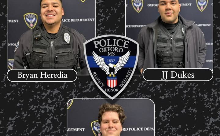 The Oxford Police Department announced that three new members are joining its ranks, naming Bryan Heredia and JJ Dukes to Patrol and Dustin Weeks to the department’s PACE unit, the department said in a Facebook post Monday.