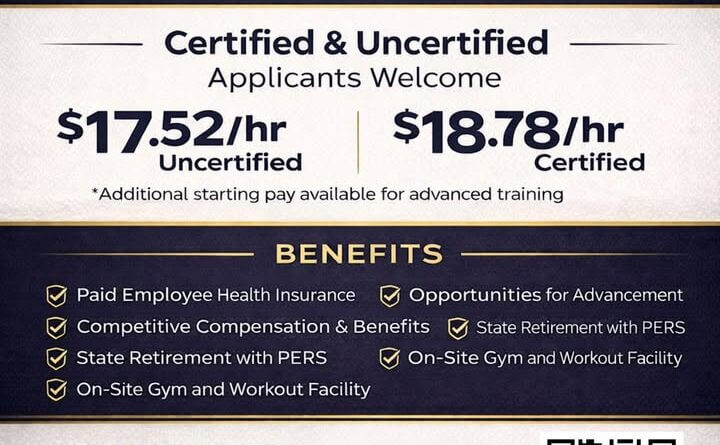 The announcement provides a local employment opportunity and may affect facility staffing and public safety operations in the county. Additional details about qualifications, hours or benefits were not included in the post. We will provide more information as it becomes available.