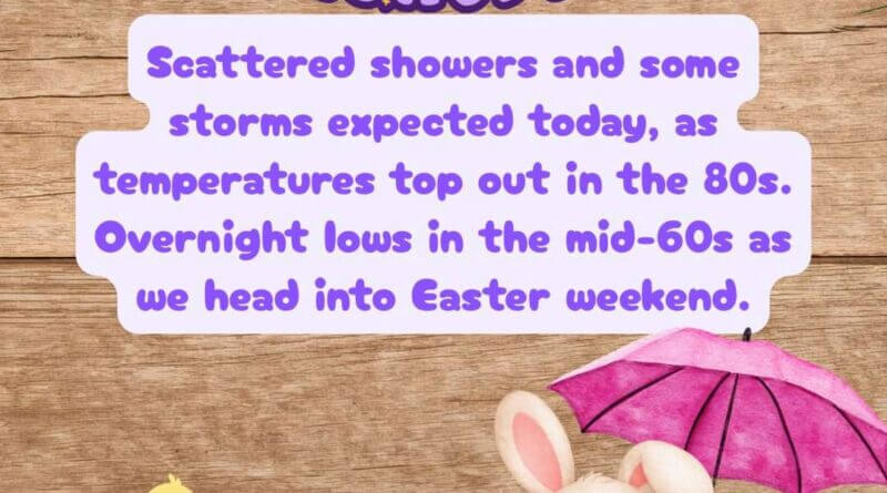 Scattered showers, storms expected Thursday