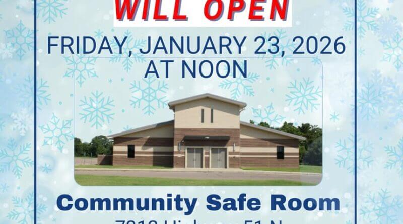 The Southaven Community Safe Room will open Friday, Jan. 23, 2026, at noon as a warming center to provide a place for people needing shelter during upcoming extreme weather conditions, a Facebook post said.