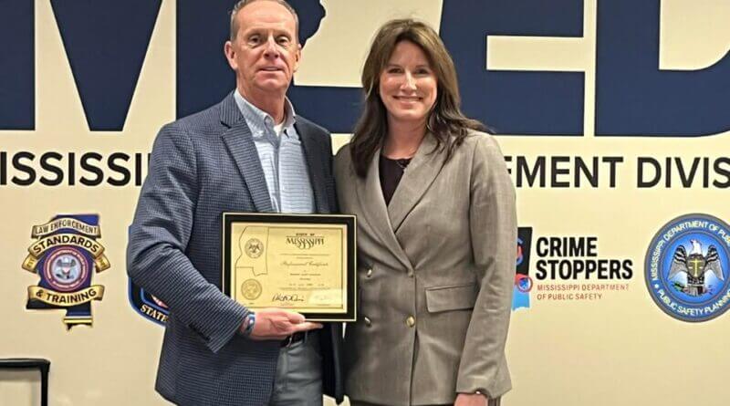 Standards and Training Director Amy Vanderford presented Sheriff Johnson with Deputy Haggard’s original professional certificate today, according to a Facebook post. Sheriff Johnson, who serves as chairman of the board, received the document during a board meeting.