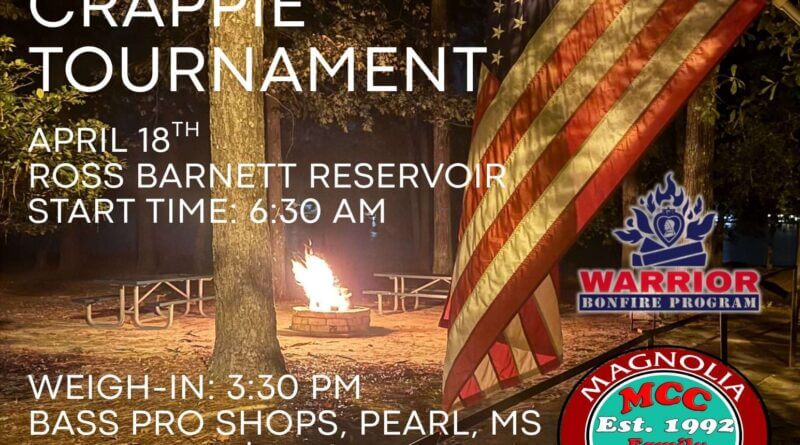 PEARL, Mississippi — Anglers and community members are invited April 18 to the Ross Barnett Reservoir for a crappie fishing tournament and fundraiser to benefit Purple Heart recipients, organizers said.