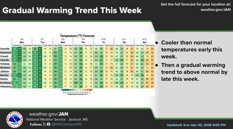 In its Monday weather update, Darkhorse Press said the region will begin the week with cooler-than-normal temperatures before a gradual warming trend pushes temperatures above normal by late in the week.