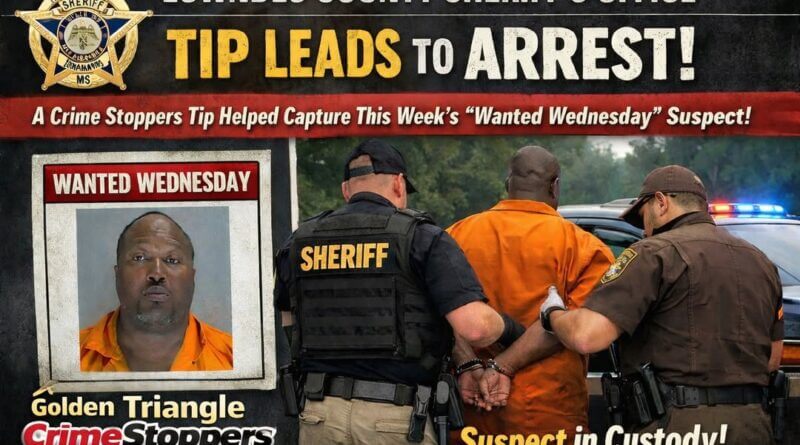 The Lowndes County Sheriff’s Office announced the arrest of a wanted individual following a tip received through Crime Stoppers. The agency expressed gratitude to the community for its ongoing support and assistance in solving crimes.