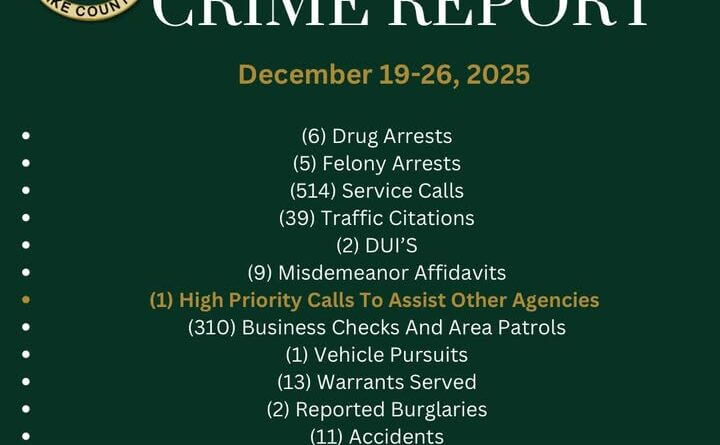 The Pike County Sheriff’s Office has released its crime report for December 19 through 26, according to the department’s public relations division.
