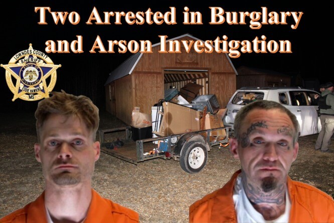 Lowndes County sheriff’s deputies arrested two men Tuesday in connection with a burglary, vehicle break-in and arson, authorities said.