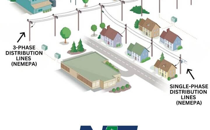 Three-phase lines are a common method of distributing electrical power. In general terms, they use three alternating currents offset in phase to carry more power more efficiently than single-phase lines and to balance loads across a network.
