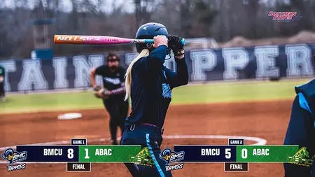 Blue Mountain Christian University swept Abraham Baldwin Agricultural College 8-1 and 5-0 on Friday at the BMCU Sportsplex, and Anna Harrison set the BMCU single-season stolen-base record with her 37th steal, the school said.