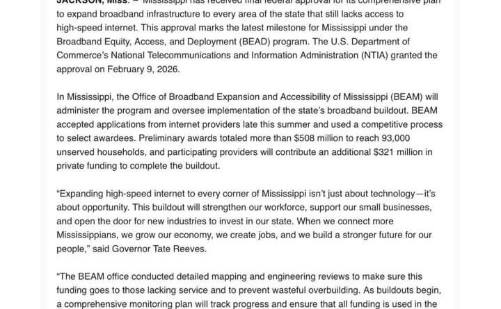 Mississippi wins federal approval for statewide broadband expansion